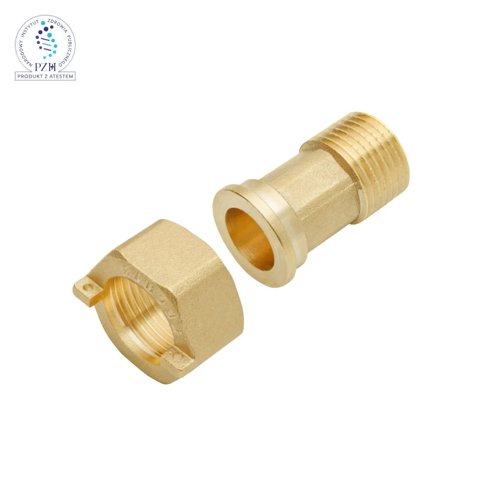 Threaded fitting for making detachable connections in water, heating and other installations in which a non-aggressive working medium flows. Body: brass (optionally – nickel-plated).