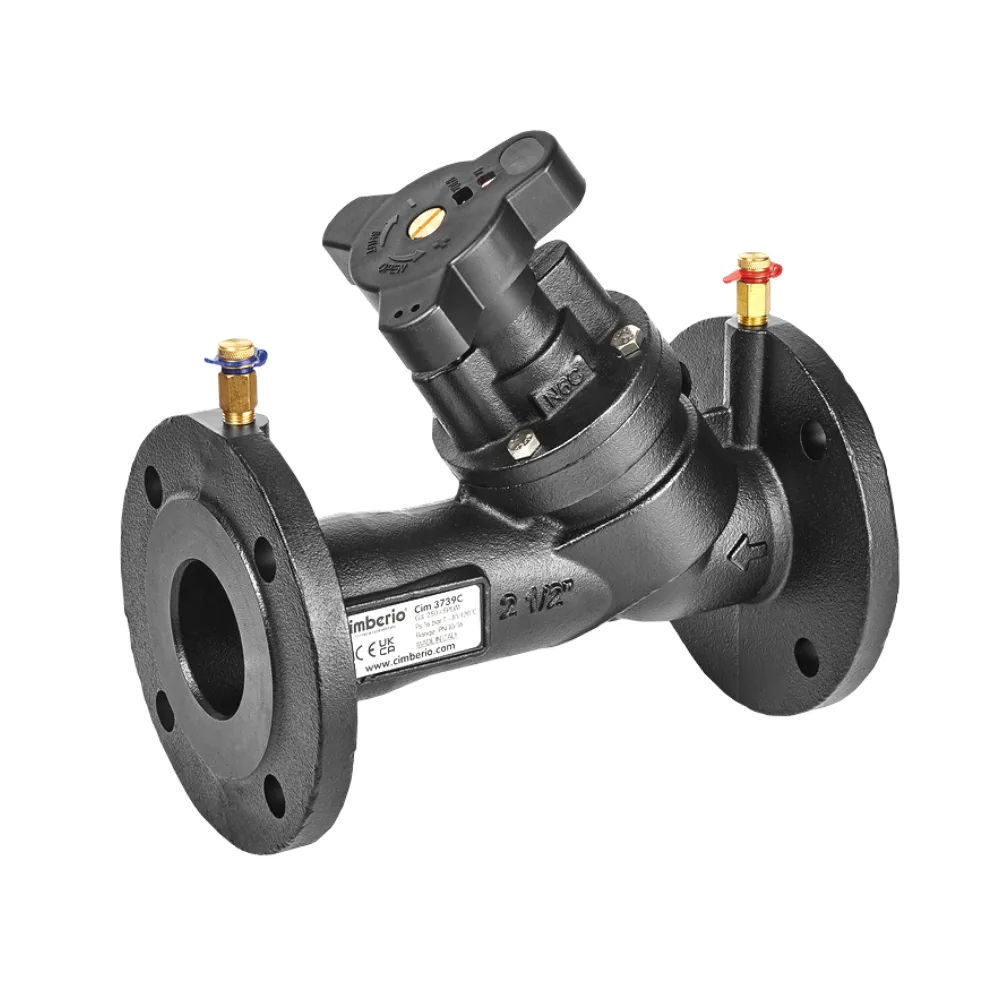 3739C are flanged balancing valves with a variable orifice, which in one body perfectly combine the properties of a flow control valve and a device measuring this quantity. They are intended for large heating or cooling installations. Product in size DN40 – is blue.