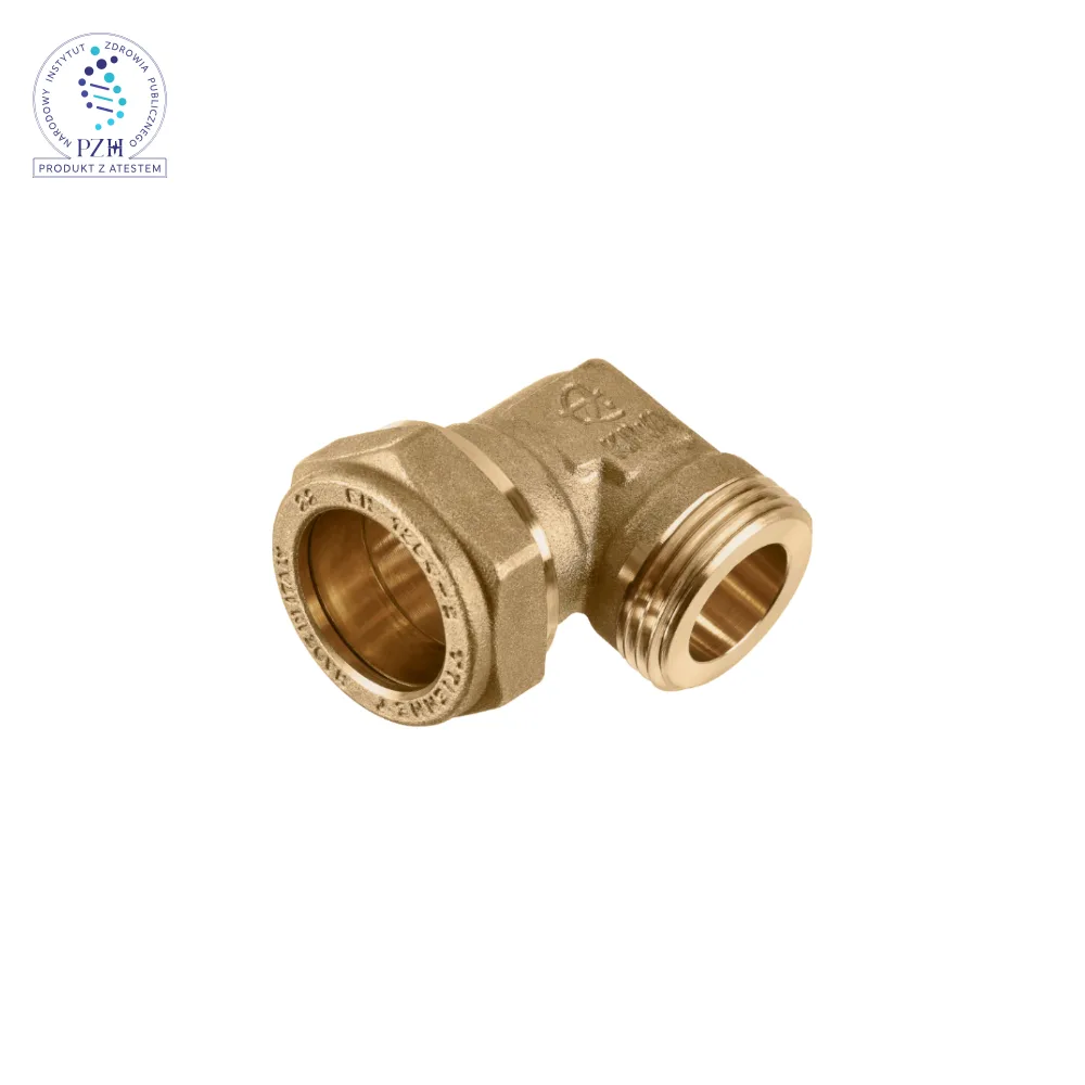 Compression fitting with a full gripp ring for copper pipes. To make detachable connections in water, heating and other installations in which a non-aggressive working medium flows. Due to its high operating temperature, it is suitable for solar installations. On the side with the threaded end, it has a wide (min. 3.0 mm wall thickness) flat face. This allows a direct connection of flexible, corrugated hoses or any other connection with a flat gasket. Body, nut and gripp ring: CW 617N brass.