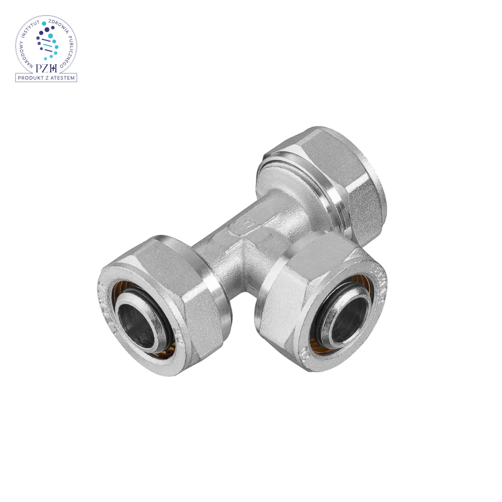 Compression fitting, with a gripp ring “monoblock” type. For demountable connections (pipelines cannot be bricked up) of cross-linked polyethylene and multilayer pipes. For water, heating and other installations with a non-aggressive working medium. Body, nut, gripp ring: brass.