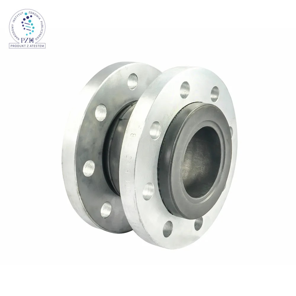 Elastomer compensator for water and heating installations. Bellows: EPDM with a nylon reinforcing layer, flanges: galvanized carbon steel.
