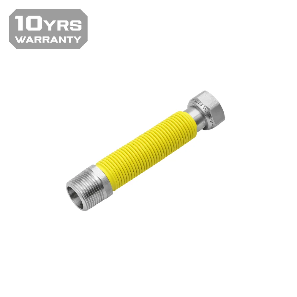 Flexible and extensible hose for connecting all permanently installed gas home appliances to the gas installation. Hose: AISI 304L austenitic steinless steel, outer coating – polyolefin, ends: AISI 304 stainless steel, gasket: NBR.