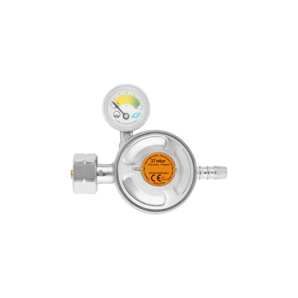 The FPB-A310IE pressure reducer is equipped with a manometer that allows you to read the level of gas in the cylinder, as well as a safety valve that blocks the flow of gas in case of damage to the gas line.