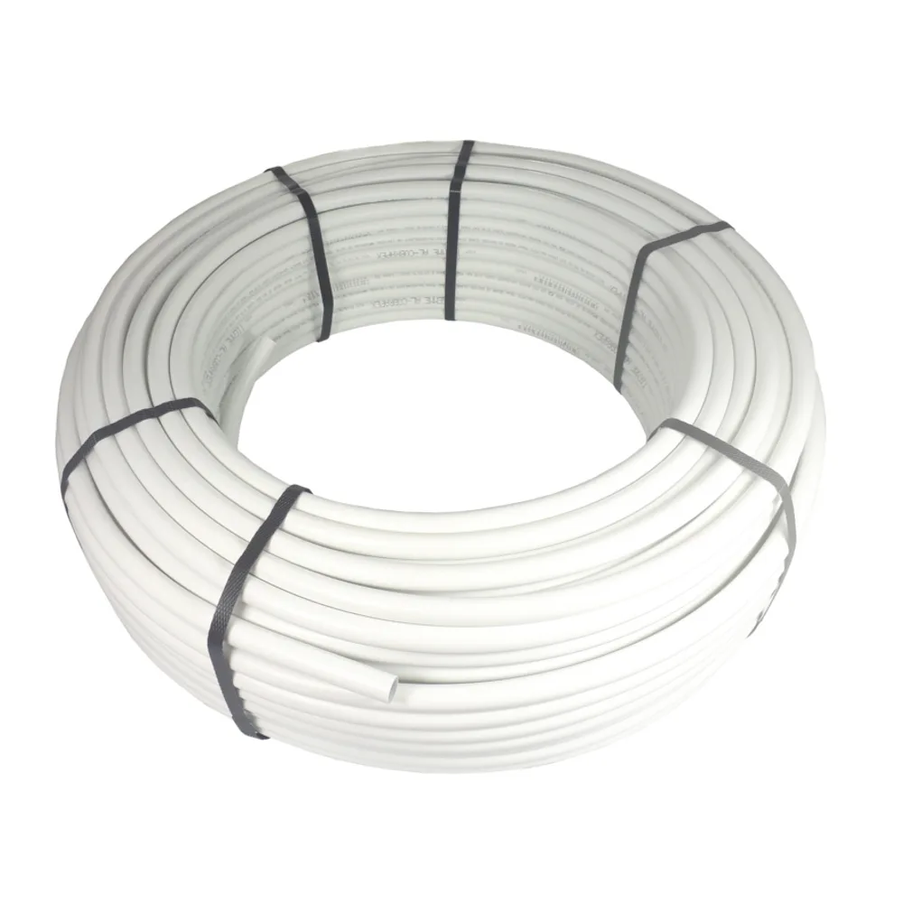 Layers of the pipe: PE-Xb cross-linked polyethylene, laser welded aluminum, PE-Xb cross-linked polyethylene.