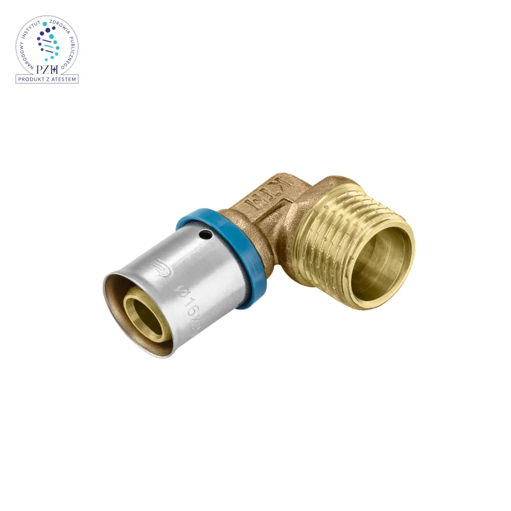 Pressed fitting for multilayer pipes used to make non-detachable connections in water, heating and other installations in which a non-aggressive working medium flows. Body: brass; sleeve: stainless steel; o-ring: EPDM.