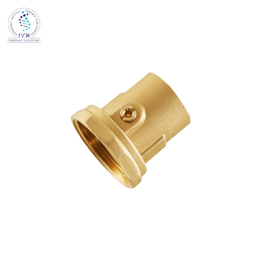 Ball valve with F threaded connection and F swivel nut, full passage – for connecting circulation pumps. Body: CW 617N brass, spindle: CW 614N brass, ball: chrome-plated CW 614N brass, ball seals: PTFE, spindle seals: NBR rubber.