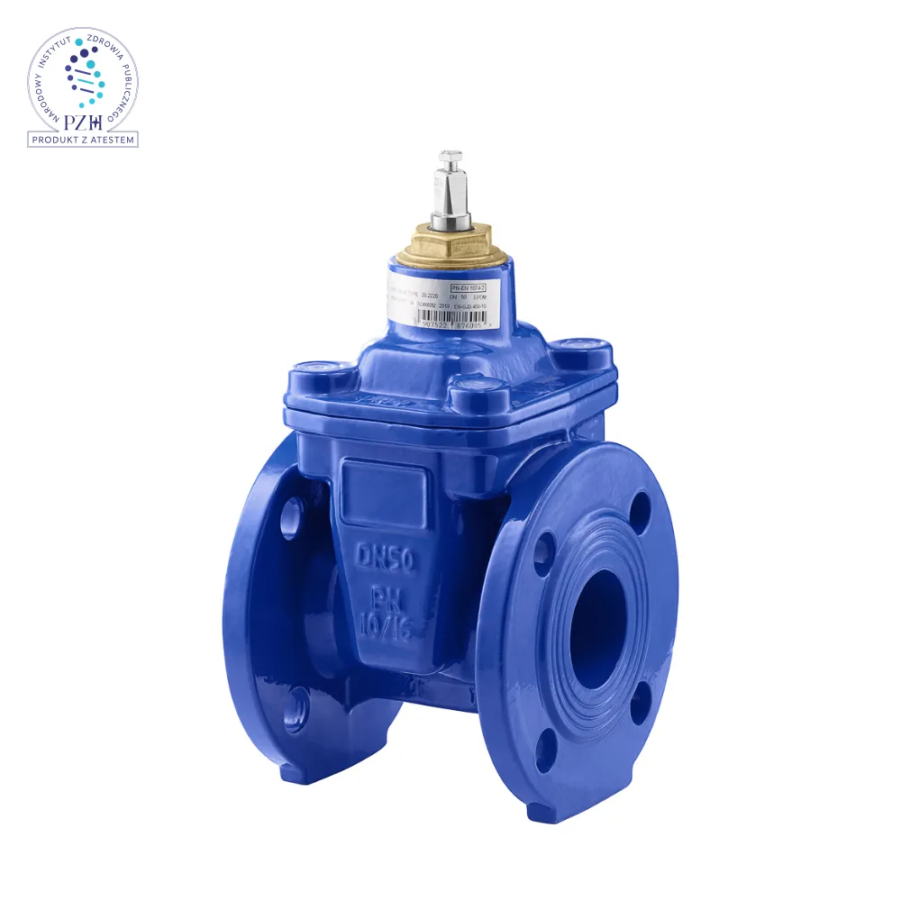 Gate valve for use in water installations. Body, wedge: ductile iron, spindle: stainless steel. Spindle seal by three O-rings. Brass stem seal bushing. Wedge nut made of brass.
