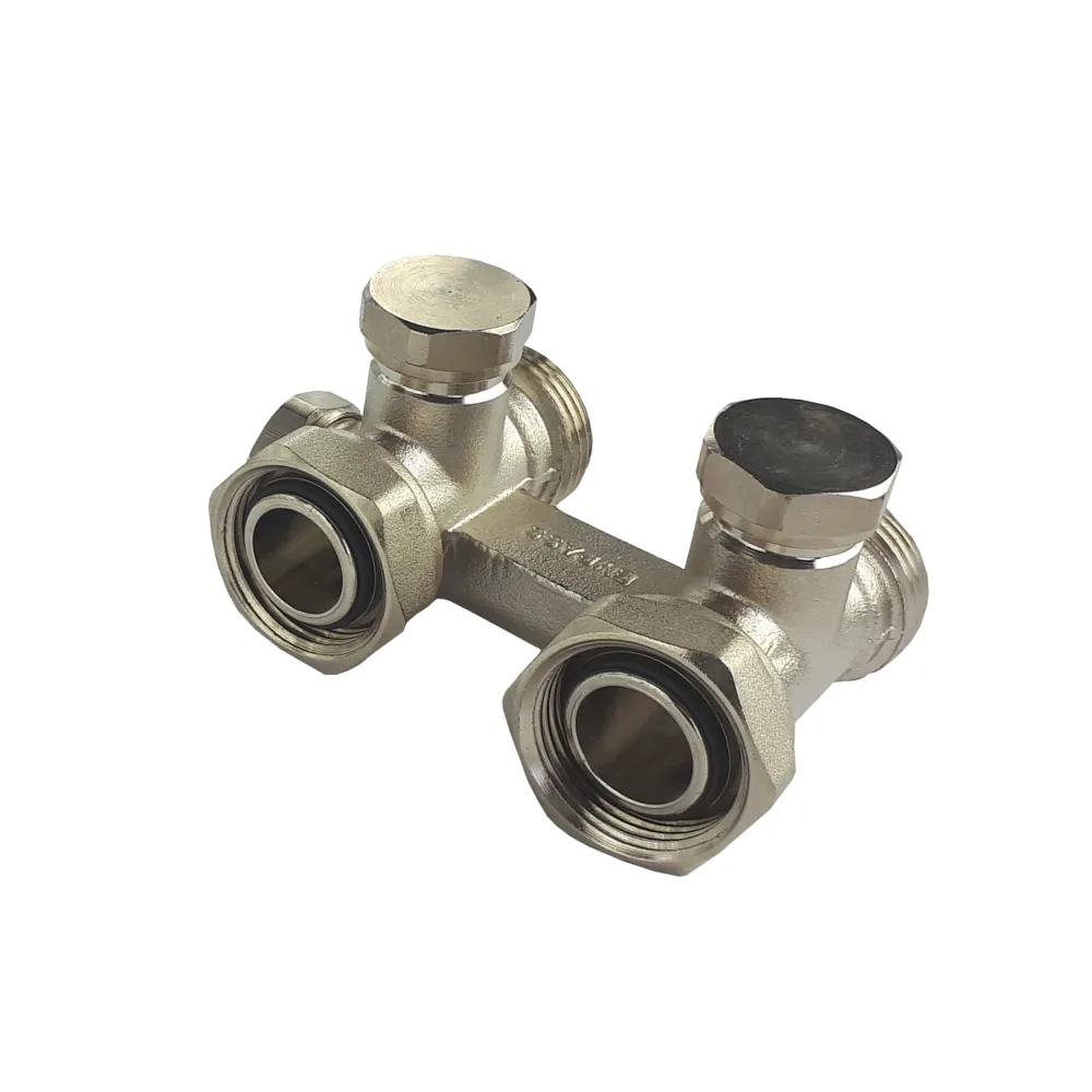 Straight radiator connection with bypass. Body: CW 617N nickel-plated brass, seals: EPDM.