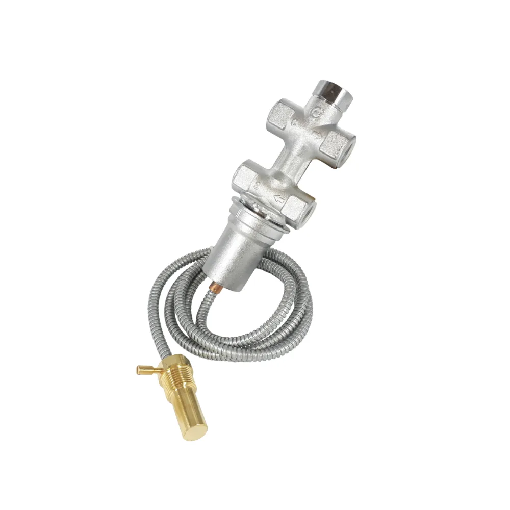The valve is used to protect the installation against the effects of excessive pressure increase. It is used for solid fuel boilers without a tank or safety coil. Body and stem made of CW 617N brass, seals – EPDM, spring made of AISI 316 stainless steel. Capillary length is 1300 mm.