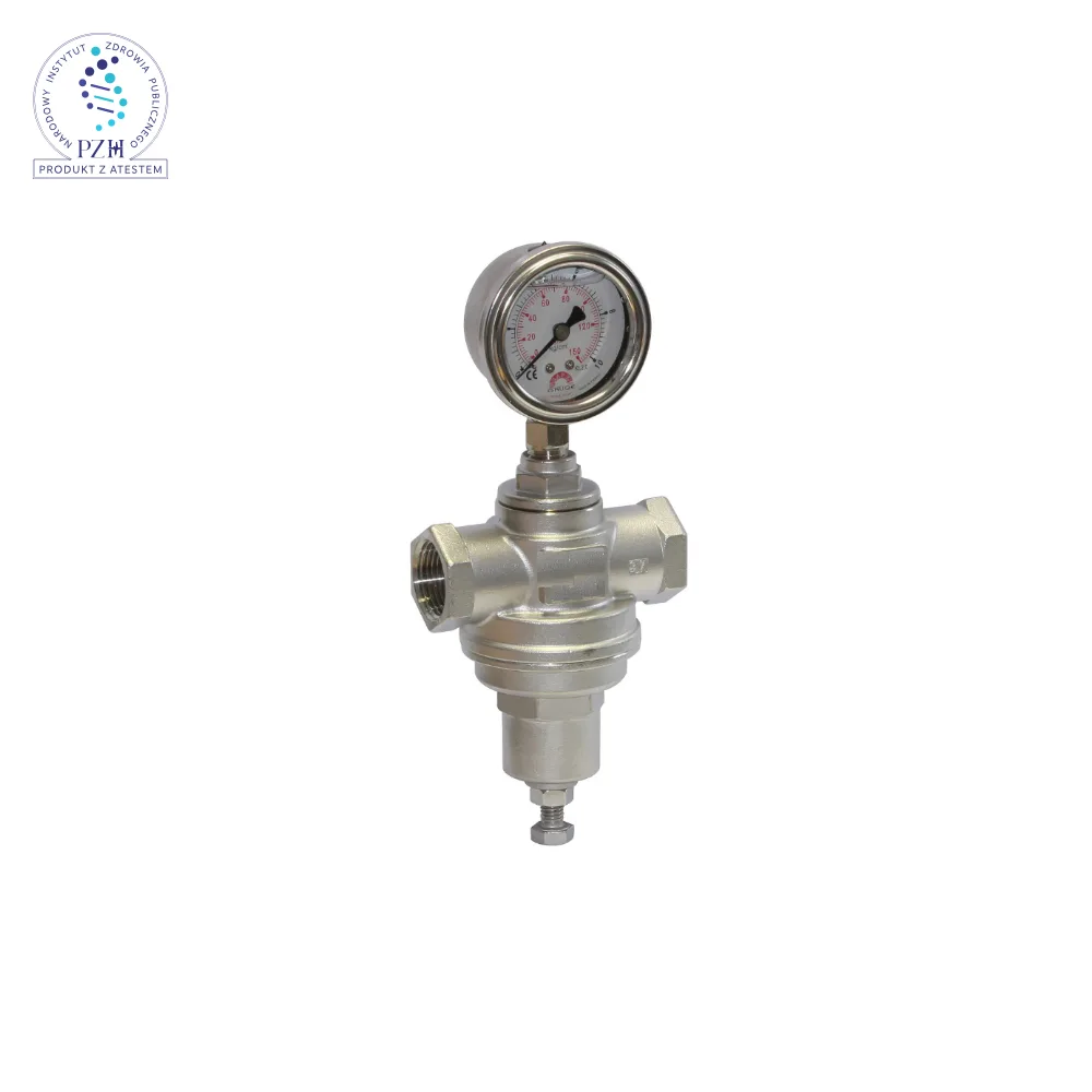 The valve prevents the flow of water behind the valve if the inlet pressure drops below the level set by the adjustment screw. Used, for example, behind a fire branch to secure the appropriate pressure in the fire protection pipeline by cutting off domestic water. Body, stem, springs, adjustment screw: stainless steel, diaphragm: EPDM.