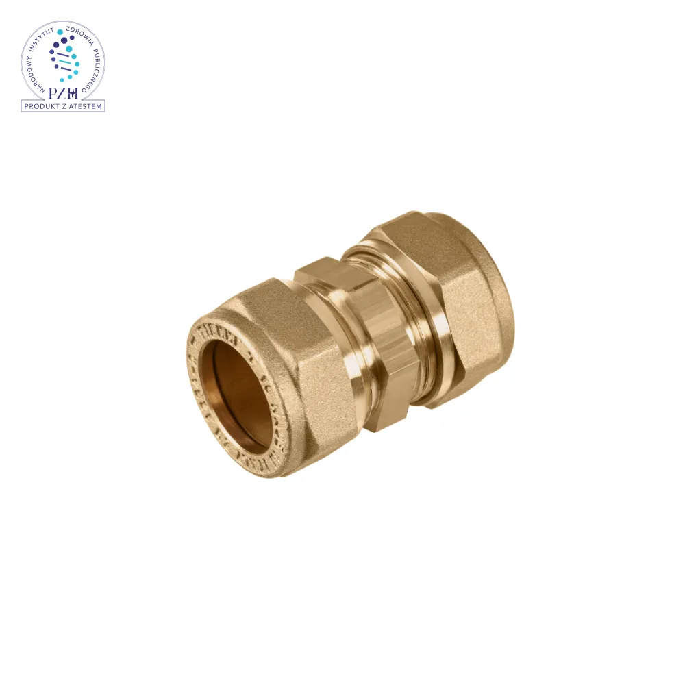 Łącznik zaciskowy z pierścieniem pełnym, do rur miedzianych – stosowany do wykonywania połączeń rozbieralnych w instalacjach wodnych, grzewczych i innych, w których płynie nieagresywny czynnik roboczy. Ze względu na wysoką temperaturę roboczą, nadaje się do instalacji solarnych. Korpus, nakrętka i pierścień zaciskowy wykonane z mosiądzu CW 617N.