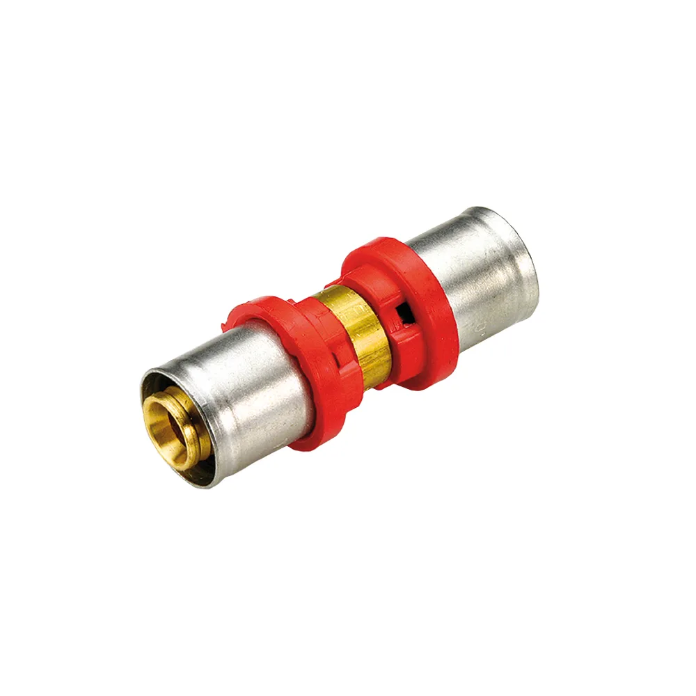 Łącznik zaprasowywany do rur z polietylenu usieciowanego i rur wielowarstwowych. Dzięki swojej konstrukcji i szczelności połączenia z rurą, jest łącznikiem który można zamurowywać w przegrodach budowlanych. Korpus: mosiądz CW 602N odporny na odcynkowanie, tuleje: stal nierdzewna.