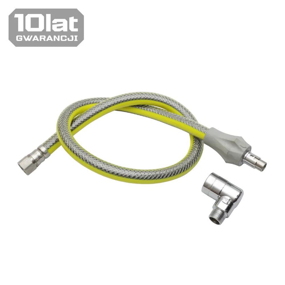 Trójwarstwowy wąż gazowy, z austenitycznej stali nierdzewnej, przeznaczony do przyłączania domowych urządzeń zasilanych paliwami gazowymi, do instalacji. Zgodny z normą PN-EN 14800:2007, posiada znak CE. Może być stosowany w obiektach o zagrożeniu pożarowym. Przewód: stal austenityczna AISI304L, oplot: AISI304, powłoka zewnętrzna – PCV ognioodporne, przyłącza: stal nierdzewna AISI304.