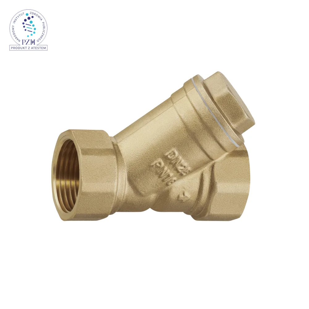 Filtr skośny stosowany jest do odfiltrowywania z czynnika roboczego zanieczyszczeń pochodzenia mechanicznego i biologicznego, które następnie zbierają się w osadniku filtra, umożliwiającym usunięcie ich na zewnątrz instalacji. Korpus i korek rewizyjny wykonane z mosiądzu CW 617N, wkład filtracyjny: stal nierdzewna AISI 304, uszczelnienie: fibra. Średnica otworów wkładu filtracyjnego 300 μm.