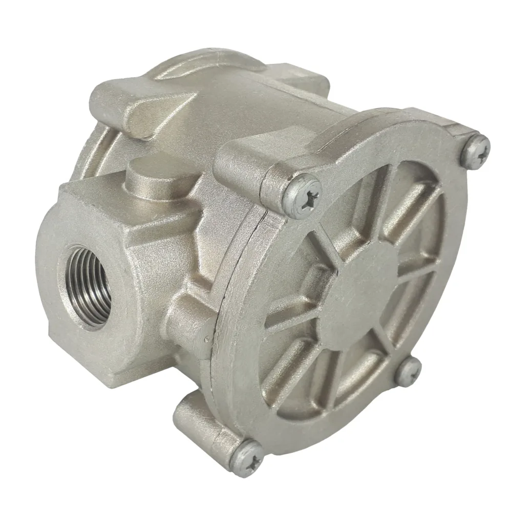 Korpus: aluminium, pokrywa: stal nierdzewna, wkład filtrujący: stal nierdzewna + materiał syntetyczny (nylon, włókno szklane, viledon).