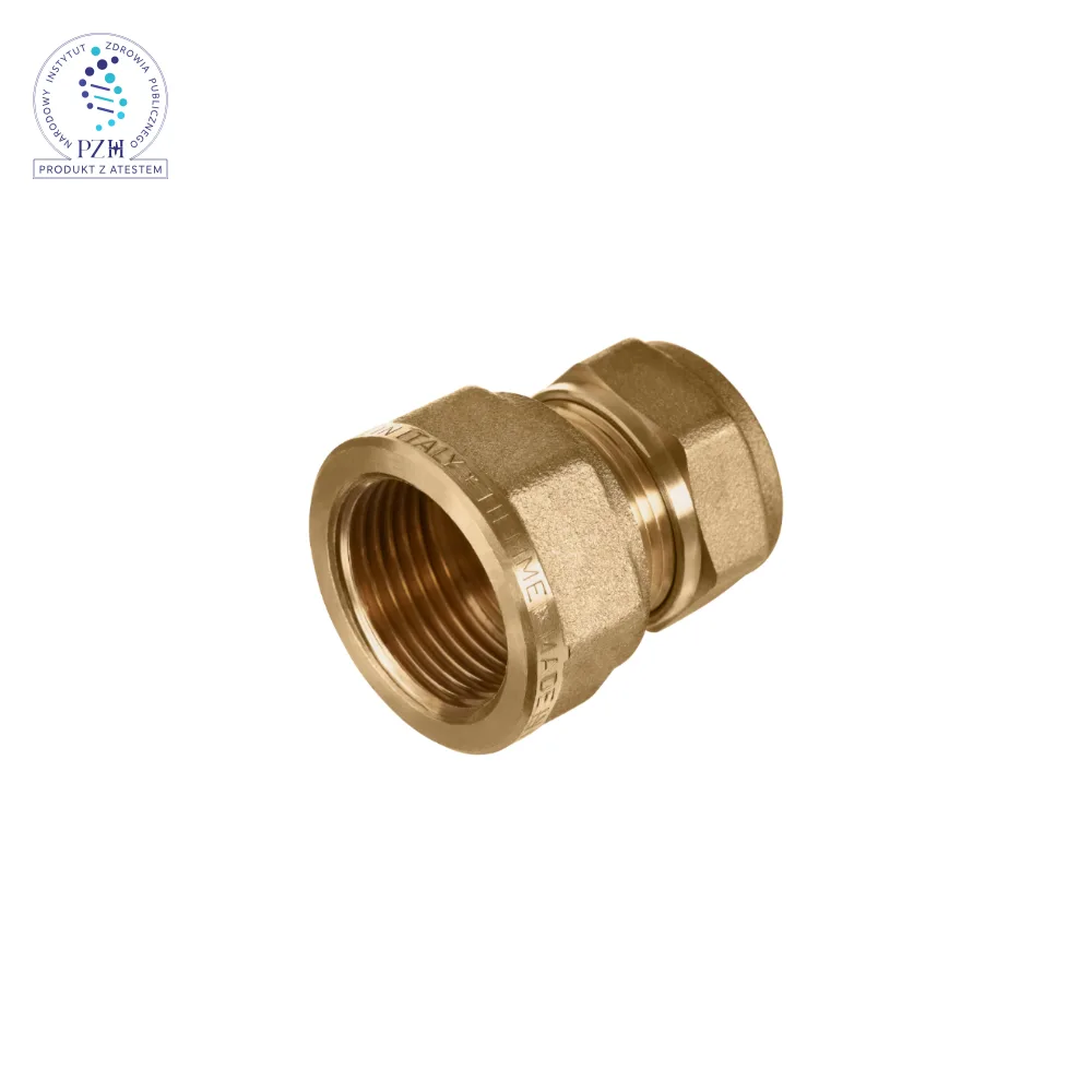 Łącznik zaciskowy z pierścieniem pełnym, do rur miedzianych – stosowany do wykonywania połączeń rozbieralnych w instalacjach wodnych, grzewczych i innych, w których płynie nieagresywny czynnik roboczy. Ze względu na wysoką temperaturę roboczą, nadaje się do instalacji solarnych. Korpus, nakrętka i pierścień zaciskowy wykonane z mosiądzu CW 617N.