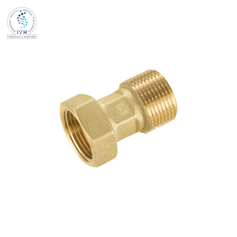 Kształtka gwintowana do wykonywania połączeń rozbieralnych w instalacjach wodnych, grzewczych i innych, w których płynie nieagresywny czynnik roboczy. Korpus złączki wykonany został z mosiądzu (opcjonalnie – niklowanego).